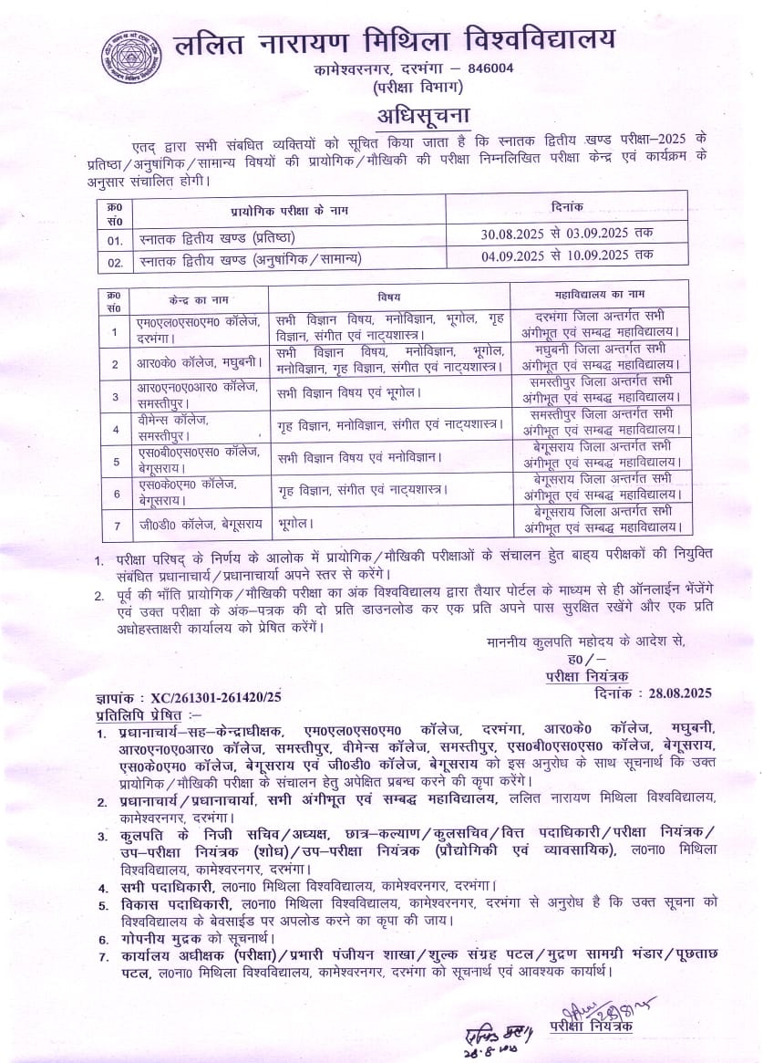 NOTICE REGARDING DEGREE PART II SPECIAL PRACTICAL EXAM