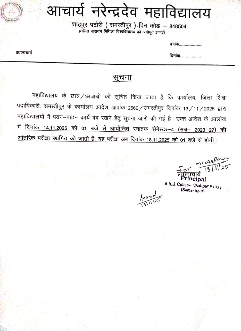 CBCS UG SEMESTER -4 CIA EXAM WHICH WAS TO BE HELD ON 14.11.25 IS CANCELED AND WILL BE HELD AGAIN ON 18.11.25.